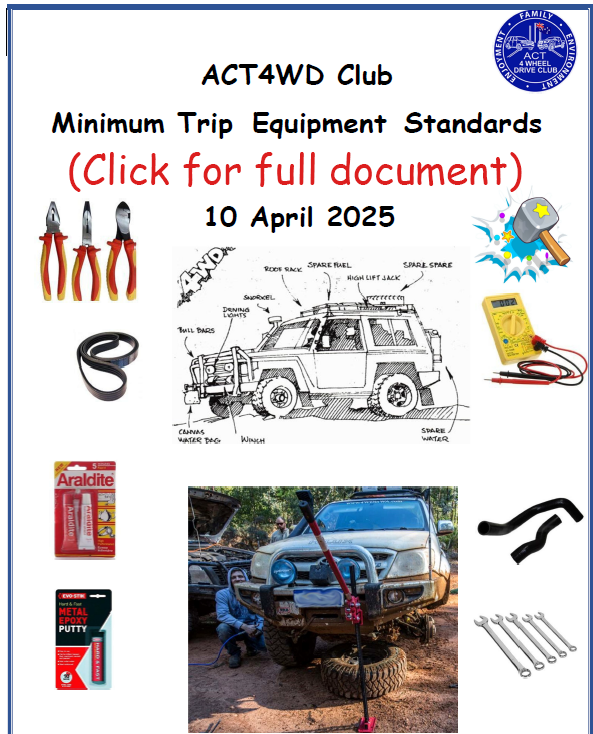 Because 4WDing can take us into some interesting places it is advisable that members carry the right gear.